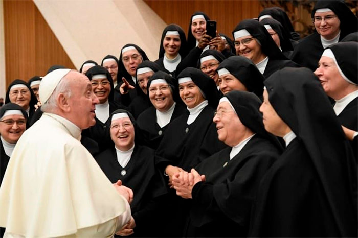 Sucesivamente, el Papa saludó a los peregrinos de lengua española, en especial a las Ministras de los Enfermos, las hijas de la Madre Torres Acosta. “Estas monjitas se pasan las noches cuidando enfermos y duermen un rato de día. Son un ejemplo de lo que es servicio hasta el fin, con abnegación de sí mismas. Sigan por ese camino”.