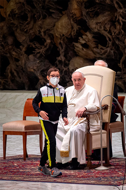 “Agradezco a este niño la lección que nos ha dado a todos, y que el Señor le ayude en su limitación, en su crecimiento, porque ha dado este testimonio que ha salido del corazón. Los niños no tienen un traductor automático en la vida, el corazón va por delante. Gracias».