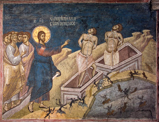 En el Evangelio de hoy Jesús entra en el país de los gerasenos y se enfrenta a un hombre con un espíritu endemoniado que está encadenado y que vive entre las tumbas.