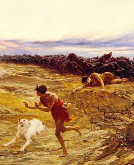 En aquel tiempo, después de atravesar el lago de Genesaret, Jesús y sus discípulos llegaron a la otra orilla, a la región de los gerasenos. Apenas desembarcó Jesús, vino corriendo desde el cementerio un hombre poseído por un espíritu inmundo, que vivía en los sepulcros. Ya ni con cadenas podían sujetarlo; a veces habían intentado sujetarlo con argollas y cadenas, pero él rompía las cadenas y destrozaba las argollas; nadie tenía fuerzas para dominarlo. Se pasaba días y noches en los sepulcros o en el monte, gritando y golpeándose con piedras. Cuando aquel hombre vio de lejos a Jesús, se echó a correr, vino a postrarse ante él y gritó a voz en cuello: “Qué quieres tú conmigo, Jesús, Hijo de Dios altísimo? Te ruego por Dios que no me atormentes”. Dijo esto porque Jesús le había mandado al espíritu inmundo que saliera de aquel hombre. Entonces le preguntó Jesús: “¿cómo te llamas?”. Le respondió: “Me llamo Legión, porque somos muchos”. Y le rogaba con insistencia que no los expulsara de aquella comarca. Había allí una gran piara de cerdos, que andaban comiendo en la falda del monte. Los espíritus le rogaban a Jesús: “Déjanos salir de aquí para meternos en esos cerdos”. Y él se lo permitió. Los espíritus inmundos salieron del hombre y se metieron en los cerdos; y todos los cerdos, unos dos mil, se precipitaron por el acantilado hacia el lago y se ahogaron. Los que cuidaban los cerdos salieron huyendo y contaron lo sucedido, en el pueblo y en el campo. La gente fue a ver lo que había pasado. Se acercaron a Jesús y vieron al antes endemoniado, ahora en su sano juicio, sentado y vestido. Entonces tuvieron miedo. Y los que habían visto todo, les contaron lo que le había ocurrido al endemoniado y lo de los cerdos. Ellos comenzaron a rogarle a Jesús que se marchara de su comarca. Mientras Jesús se embarcaba, el endemoniado le suplicaba que lo admitiera en su compañía, pero él no se lo permitió y le dijo: “Vete a tu casa a vivir con tu familia y cuéntales lo misericordioso que ha sido el Señor contigo”. Y aquel hombre se alejó de ahí y se puso a proclamar por la región de Decápolis lo que Jesús había hecho por él. Y todos los que lo oían se admiraban.