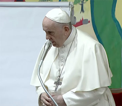 Asimismo, el Pontífice denunció la terrible situación que viven las personas que tuvieron que escapar de sus países buscando refugio y fueron a parar en lo que podemos llamar como «campos de concentración» presentes en tantas partes del mundo y en concreto, en las costas de Libia, donde los refugiados son capturados, torturados y explotados por las mafias, que a su vez venden a las mujeres como si fueran mercacías. «Ustedes que son mujeres -dijo Francisco a las jóvenes presentes- ¿se imaginan lo que es que las vendan como mercadería? Eso sucede hoy con chicas como ustedes. Cuando hablamos de refugiados no hablemos de cifras, hablamos de hermanos y hermanas nuestras que tuvieron que escapar y algunos no pudieron. Son los traficantes los mismos que los embarcan y después los reciben cuando son devueltos. Es un momento muy duro, ser refugiado es caminar sin suelo seguro, caminar sin saber hacia dónde», aseveró el Santo Padre.