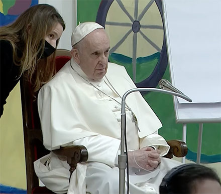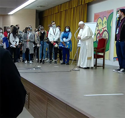 El Papa Francisco participó en un encuentro con 50 jóvenes de Scholas Occurrentes en el Pontificio Colegio Internacional Maria Mater Ecclesiae.