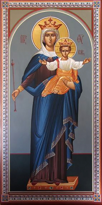 El icono recoge toda la teología de Don Bosco sobre la Auxiliadora de los Cristianos.