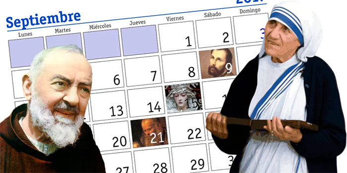 Día 23.- San Pío de Pietralcina, Padre Pío. Uno de los santos con más popularidad del último siglo, famoso por su vida austera, su obediencia y por sufrir los estigmas de Jesús en la Cruz. Ha enseñado, sobre todo en el confesionario, como el dolor puede hacer santo a los que creen.