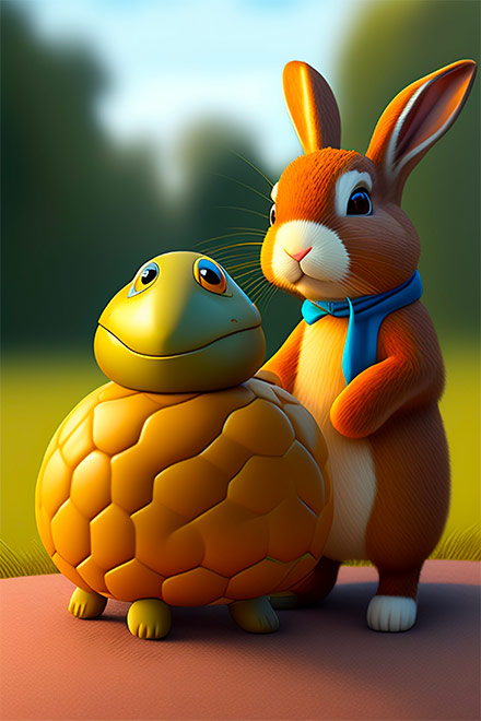 Una tortuga y una liebre siempre discutían sobre quién era más rápida. Para demostrarlo, decidieron correr una carrera; eligieron una ruta y comenzaron la competencia. La liebre arrancó a toda velocidad y corrió enérgicamente durante algún tiempo.