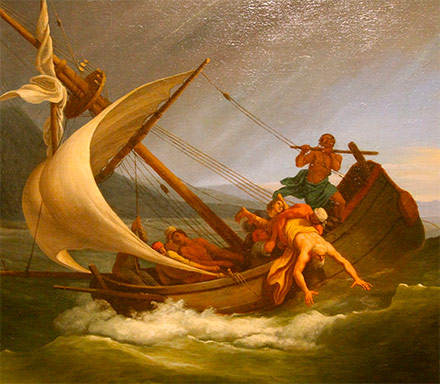 Quiero decir, eso sería lo último que cualquier israelita desearía hacer. Y entonces, ahora, nuestra lectura del domingo no se entretiene en fuegos de artificio porque justo a continuación de esa frase que leí viene la huida de Jonás. Se dirige a la costa, reserva pasaje en un barco y zarpa -dice aquí- hacia Tarsis. Tarsis para ellos significaba Tombuctú. Significaba el fin del mundo. Bueno, somos todos nosotros. Es por esa razón que esta historia nos habla con tanta fuerza. Así somos todos. Escuchamos la voz de Dios en nuestra conciencia que típicamente nos dice que hagamos cosas difíciles, cosas exigentes espiritualmente. Tomar el camino fácil, bueno, siempre se nos propone eso, y la mayoría de nosotros lo tomamos. Pero allí está la conciencia para decir no, no ese camino fácil, este camino espiritual desafiante. Entonces, como Jonás, a la mayoría se nos dice que vayamos al este por tierra, y vamos al oeste por mar, ¿cierto? La mayoría de nosotros corremos al barco más cercano y tratamos de llegar lo más lejos posible del pedido de Dios. Bueno, ¿qué sucede? Caos.