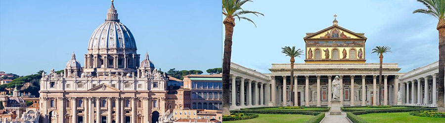 Desde un principio, ambas basílicas ofrecen una historia parecida. Son los dos templos más visitados de Roma y se convierten en centros mundiales de peregrinación. Desde todas partes del orbe cristiano se iba a rendir homenaje a los Príncipes de los Apóstoles (ad limina apostolorum). Era tal la concurrencia de peregrinos que el papa San Simplicio, en el siglo V, estableció en ambas basílicas un servicio permanente de sacerdotes para administrar el bautismo y la penitencia. Cuando Alarico sitió la ciudad de Roma en el año 410, prometió a los romanos que las tropas respetarían a quienes se refugiasen en las basílicas apostólicas. A propósito de esto nos cuenta San Jerónimo que la noble dama Marcela huyó de su palacio del Aventino y corrió a la basílica de San Pablo «para hallar allí su refugio o su sepultura». En invasiones posteriores, los romanos no tuvieron tanta suerte, y las basílicas apostólicas fueron saqueadas más de una vez. A fin de evitar tantos desastres, León IV, en el siglo IX, hizo amurallar la basílica vaticana y los edificios contiguos, creando la que en adelante se llamó Ciudad Leonina. Lo propio hizo luego el papa Juan VIII con la basílica de San Pablo. El nuevo recinto tomó el nombre de Joanópolis.