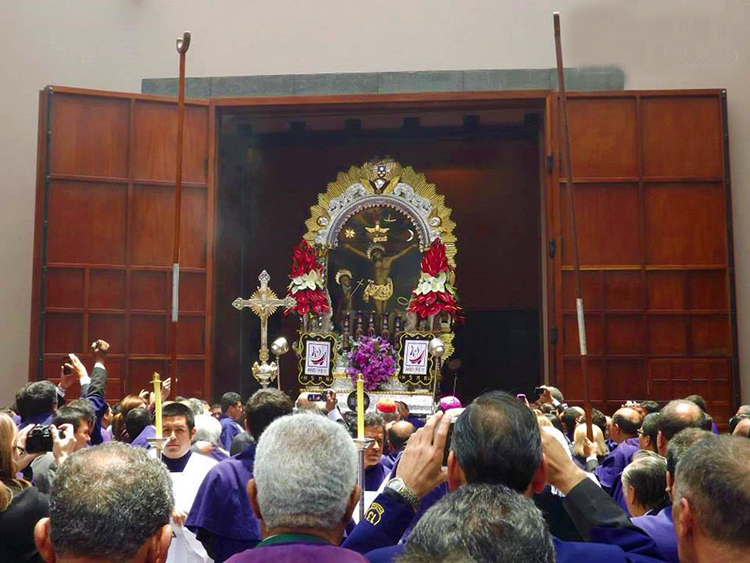 Desde hace décadas, el Cristo de Pachacamilla sale cada año en octubre a recorrer las calles en diferentes partes del mundo y bendice a multitudes de fieles que lo acompañan. La devoción por el “Cristo de los Inmigrantes” se ha expandido en todas los países donde los peruanos han inmigrado y ha tocado el corazón de todas las razas, clases sociales y culturas de las naciones que lo acogen con fe. Y he aquí el gran milagro.