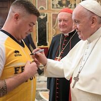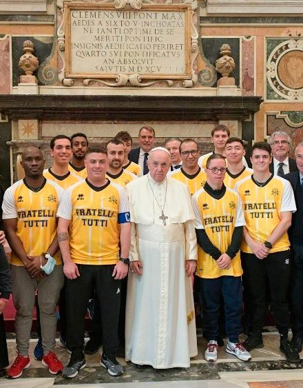En el terreno de juego -con una camiseta con la leyenda «Fratelli tutti» (Hermanos todos)- también habrá un joven futbolista con síndrome de Down, un miembro de las «Olimpiadas Especiales» y tres inmigrantes. Estos tres migrantes, tras un viaje marcado por los abusos y la violencia, que les hizo pasar del campo griego de Lesbos al italiano, han sido acogidos por la Comunidad de Sant’Egidio y están viviendo una experiencia de integración. Gracias a todos por aceptar formar parte del «equipo del Papa». Es un equipo en el que no hay barreras y que hace de la inclusión la simple normalidad.10:21