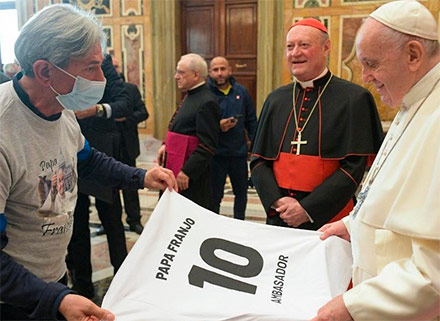 El partido de mañana domingo en la ciudad italiana de Formello, en el campo del club deportivo del Lazio, será un partido de fútbol marcado por «un estilo de pasión deportiva vivido con solidaridad y gratuidad, con un espíritu amateur e inclusivo». Así lo recordó el Papa Francisco al recibir esta mañana a los participantes en el partido amistoso asociado a un evento de recaudación de fondos para apoyar el proyecto «Un calcio all’esclusione» (Una patada contra la exclusión), promovido por la Diócesis de Roma con el objetivo de favorecer la inclusión de los rom (gitanos, romaníes, cíngaros o rom, una comunidad o etnia originaria del subcontinente indio) y las personas más vulnerables. El «equipo del Papa – Fratelli tutti» está compuesto por guardias suizos, empleados del Vaticano, hijos de empleados y sacerdotes. El Pontífice recordó la especialcomposición de esta formación: