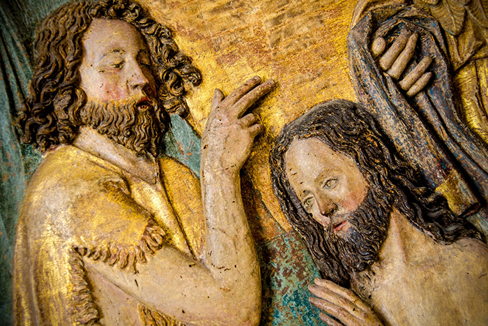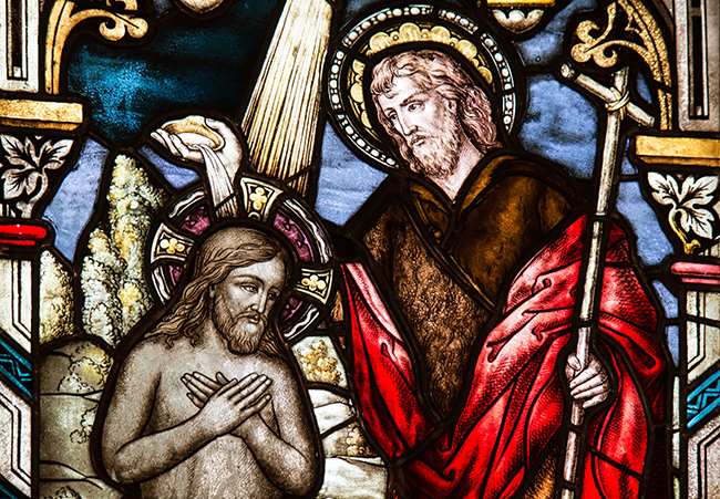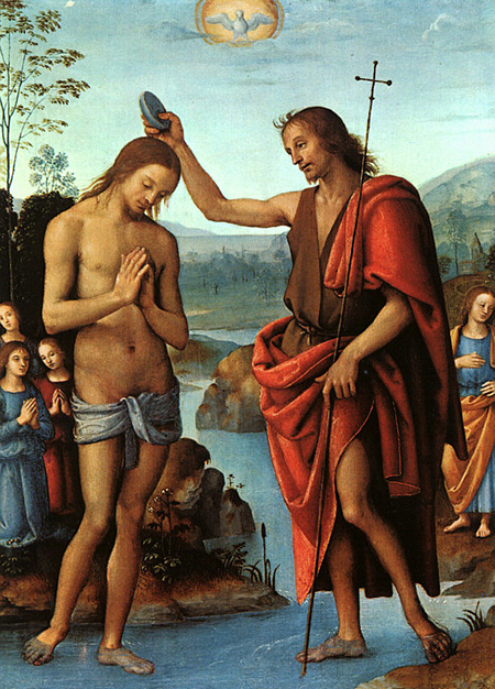 Los sinópticos dejan claro en sus relatos que Juan se reconoce inferior: rehúsa bautizar a Jesús (Mt 3,13-17), la voz del cielo revela la dignidad divina de Jesús (Mc 1,9-11), y el cuarto evangelio que no relata el bautismo señala que el Bautista da testimonio de haber visto posarse la paloma sobre Jesús (Jn 1,29-34) y de su propia inferioridad (Jn 3,28).