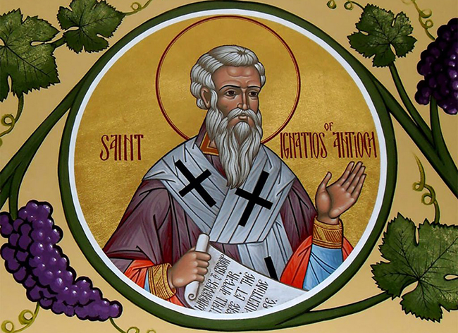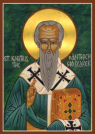 Martirologio Romano: Memoria de san Ignacio, obispo y mártir, discípulo del apóstol san Juan y segundo sucesor de san Pedro en la sede de Antioquía, que en tiempo del emperador Trajano fue condenado al suplicio de las fieras y trasladado a Roma, donde consumó su glorioso martirio. Durante el viaje, mientras experimentaba la ferocidad de sus centinelas, semejante a la de los leopardos, escribió siete cartas dirigidas a diversas Iglesias, en las cuales exhortaba a los hermanos a servir a Dios unidos con el propio obispo, y a que no le impidiesen poder ser inmolado como víctima por Cristo. († c.107)