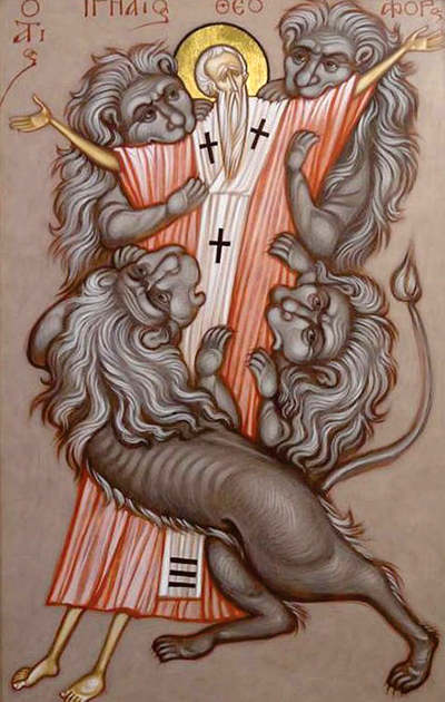 Charcos de sangre inundan el lugar, miembros despedazados y descuartizados por todas partes, algún quejido lastimero y doliente de alguno que ha sobrevivido. La noche ha llegado y cobija los pinos y cipreses de las colinas romanas. Y entre los lamentos y quejidos se oyen vibrar las palabras de un anciano, muerto y despedazado por un león. Son palabras que han quedado grabadas en los corazones de sus fieles, allá en la lejana Antioquia. Es Ignacio, el segundo sucesor de Pedro como obispo de Antioquia. «Por favor, hermanos, no me privéis de esta vida, no queráis que muera… dejad que pueda contemplar la luz; entonces seré hombre en pleno sentido. Permitid que imite la pasión de mi Dios.»