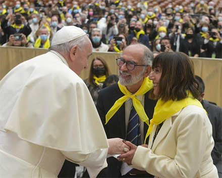 El Papa se encontró con 600 miembros de la asociación, «Retrouvaille». El programa Retrouvaille, que como lo indica la palabra en francés significa redescubrir. Es un programa que ayuda y asiste a las parejas que están pasando una crisis matrimonial y desean “redescubrir su relación en base al diálogo a través de sentimientos”.