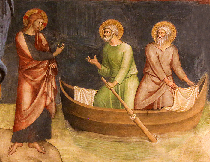 Una vez que Jesús caminaba por la ribera del mar de Galilea, vio a dos hermanos, Simón, llamado después Pedro, y Andrés, los cuales estaban echando las redes al mar, porque eran pescadores. Jesús les dijo: “Síganme y los haré pescadores de hombres”. Ellos inmediatamente dejaron las redes y lo siguieron.