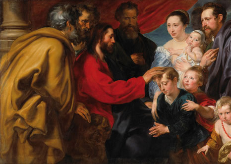 En aquel tiempo, la gente le llevó a Jesús unos niños para que los tocara, pero los discípulos trataban de impedirlo. Al ver aquello, Jesús se disgustó y les dijo: «Dejen que los niños se acerquen a mí y no se lo impidan, porque el Reino de Dios es de los que son como ellos. Les aseguro que el que no reciba el Reino de Dios como un niño, no entrará en él». Después tomó en brazos a los niños y los bendijo imponiéndoles las manos.