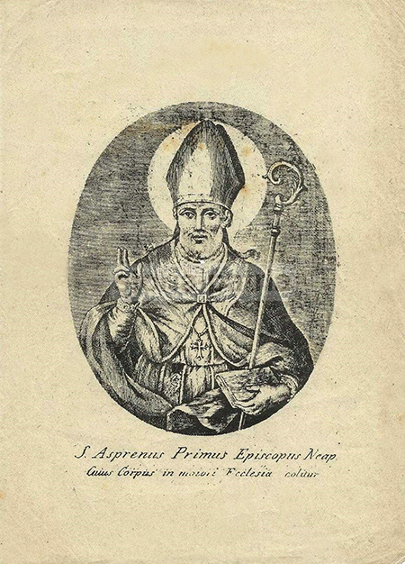 Muchos napolitanos, por la gran devoción para el patrón principal de la ciudad san Genaro y de su espectacular milagro anual de la licuefacción de la sangre, ha olvidado o hasta ignoran que el primer obispo de la naciente comunidad cristiana de Nápoles fue san Asprenato, mientras san Genaro fue obispo de Benevento y mártir en Pozzuoli en las proximidades de Nápoles.