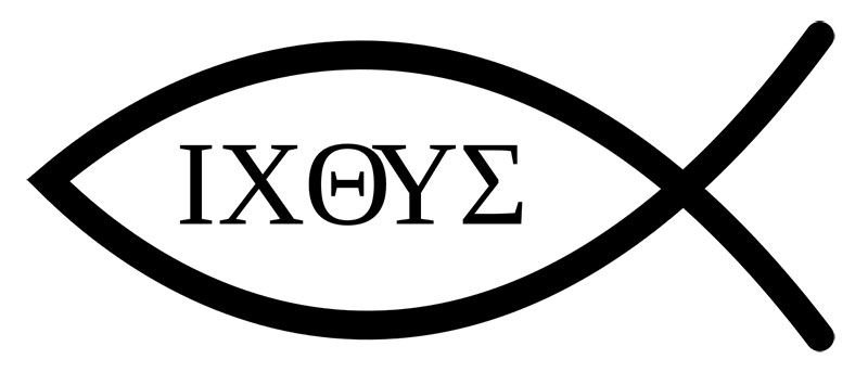 «La popularidad del pez como símbolo cristiano se debe al famoso acróstico que consiste en que las letras iniciales de cinco palabras griegas que forman la palabra griega que significa pez (Ichthys), que describen brevemente quién es cristo y la razón de que sea adorado por los creyentes : «Iesous Christos Theou Yios Soter», i.e. Jesús Cristo hijo de Dios Salvador. (ver el discurso del emperador Constantino , “Ad coetum Sanctorum” c. xviii.)