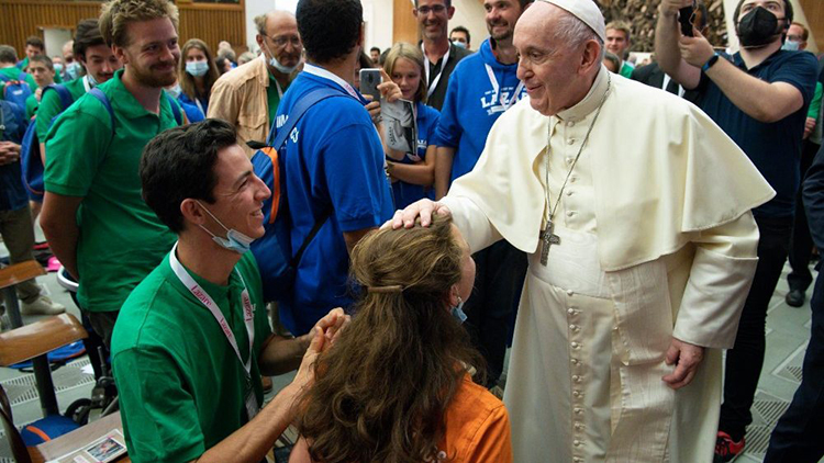 A continuación, el Pontífice se dirige a los pobres, los enfermos y los sin techo, que son acogidos diariamente por la asociación. A ellos la invitación es a no desanimarse: «En la sociedad, puedes sentirte aislado, rechazado y sufrir la exclusión. Pero no te rindas… Sigan adelante, cultivando en sus corazones la esperanza de una alegría contagiosa».