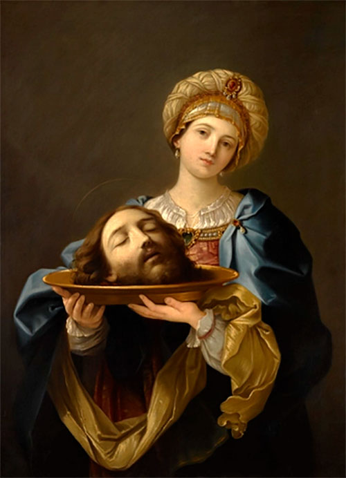 El rey se llenó de tristeza, pero para no contrariar a la muchacha y porque se imaginaba que debía cumplir ese vano juramento, mandó a uno de su guardia a que fuera a la cárcel y le trajera la cabeza de Juan. El otro fue a la prisión, le cortó la cabeza y la trajo en una bandeja y se la dio a la muchacha y la muchacha se la dio a su madre. Al enterarse los discípulos de Juan vinieron y le dieron sepultura (S. Marcos 6,17).