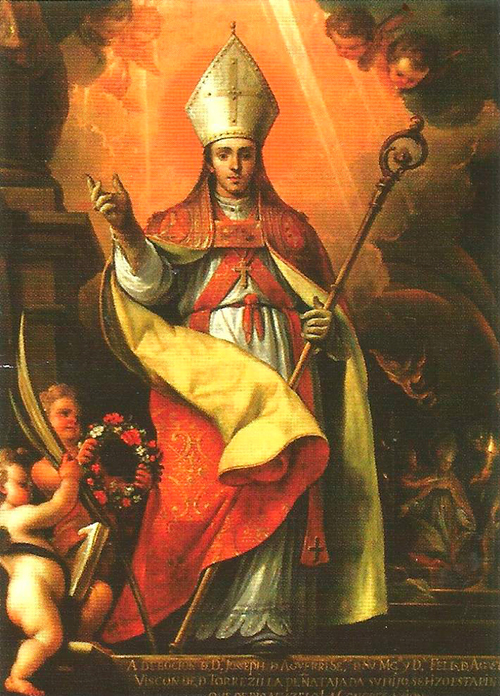 El culto a San Fermín en Pamplona es anterior a la celebración de los Sanfermines, y su imagen sigue siendo el eje principal sobre el que gira esta universal fiesta. La tradición cuenta que el presbítero Honesto llegó a la Pamplona romana enviado por San Saturnino para evangelizarla y que el senador Firmo se convirtió al cristianismo. Su hijo Fermín comenzó a predicar a los 17 años y a los 31 se marchó a predicar a las Galias. En Amiens consiguió muchas conversiones, fue encarcelado y un 25 de septiembre fue decapitado.