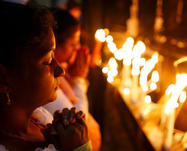 Luego se alejó de ellos a la distancia de un tiro de piedra y se puso a orar de rodillas, diciendo: “Padre, si quieres, aparta de mí esta amarga prueba; pero que no se haga mi voluntad, sino la tuya”. Se le apareció entonces un ángel para confortarlo; él, en su angustia mortal, oraba con mayor insistencia, y comenzó a sudar gruesas gotas de sangre, que caían hasta el suelo. Por fin terminó su oración, se levantó, fue hacia sus discípulos y los encontró dormidos por la pena. Entonces les dijo: “ ¿Por qué están dormidos? Levántense y oren para no caer en la tentación”.