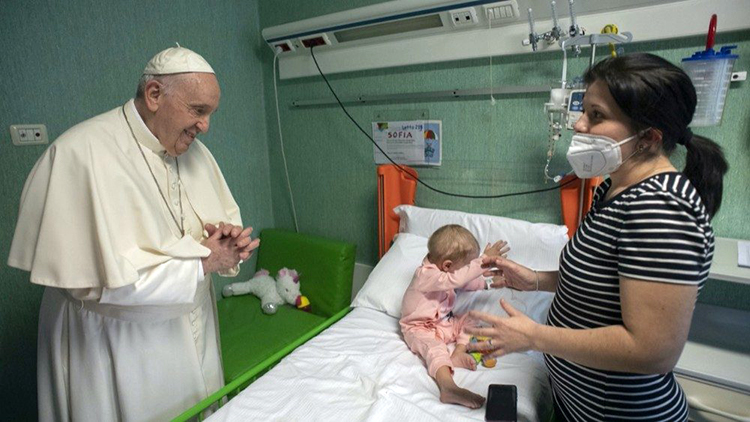 S.S. Francisco visita a los niños ucranianos hospitalizados en el Bambino Gesù