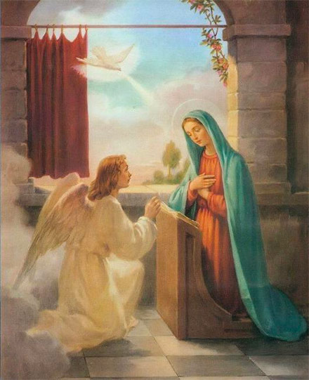 Lucas nos narra esa visita del Ángel: “Al sexto mes fue enviado por Dios a una ciudad Galilea, llamada Nazaret, a una virgen desposada con hombre llamado José, de la casa de David, el nombre de la virgen era María. Y entrando, le dijo: Alégrate, llena de gracia, el Señor está contigo. Ella se conturbó por estas palabras y discurría que significaba ese saludo. El ángel le dijo: No temas, María, porque has hallado gracia delante de Dios; vas a concebir en el seno y vas a dar a luz un hijo, a quien pondrás por nombre Jesús. Él será grande y será llamado Hijo del Altísimo, y el Señor Dios le dará el trono de David, su padre; reinará sobre la casa de Jacob por los siglos y su reino no tendrá fin”. (1, 26-33)