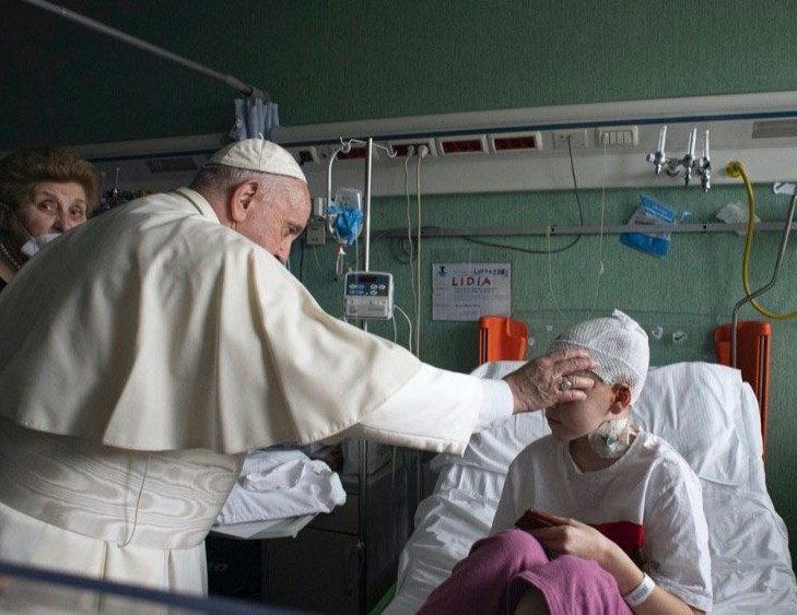 S.S. Francisco visita a los niños ucranianos hospitalizados en el Bambino Gesú
