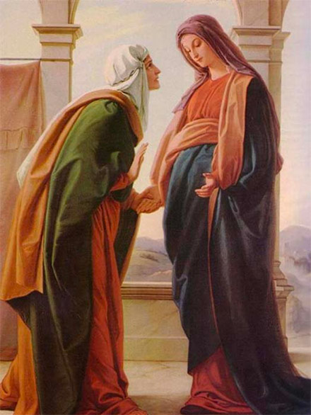En este encuentro entrañable se encuentran la fe, la humildad la voluntad de servir y la alabanza a Dios de María con la maravilla y la alegría que experimenta Isabel que alaba a María por haber creído y por su maternidad. Pero sobre todo, en el encuentro de ambas mujeres, está la presencia de Jesucristo y la acción del Espíritu Santo. Todo en la mayor simplicidad impregnada del amor fiel de Dios. María, con el hijo en las entrañas, es la nueva arca de la alianza portadora de la presencia de Dios ante la que, como un nuevo David (cf. 2S 6, 2-16)), Juan Bautista salta de júbilo dentro de las entrañas de su madre.