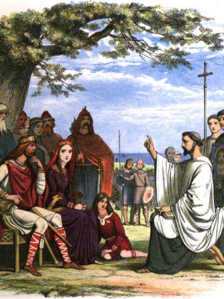 La Gran Bretaña, evangelizada desde los tiempos apostólicos (según la leyenda, el primer misionero que desembarcó en la isla fue José de Arimatea), había recaído en la idolatría después de la invasión de los sajones en el quinto y sexto siglo. Cuando el rey del Kent, Etelberto, se casó con la princesa cristiana Berta, hija del rey de París, éste le pidió que fuera erigida una iglesia y que algunos sacerdotes cristianos celebraran allí los ritos sagrados. Cuando el Papa san Gregorio Magno supo la noticia, juzgó que los tiempos estaban maduros para la evangelización de la isla. Le encomendó la misión al prior del monasterio benedictino de San Andrés, cuya principal cualidad no era la valentía, sino la humildad y la docilidad. Ese monje era Agustín.