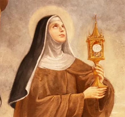 Clara tenía una poderosa devoción a la Sagrada Eucaristía . El 11 de agosto es la fiesta de Santa Clara.