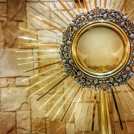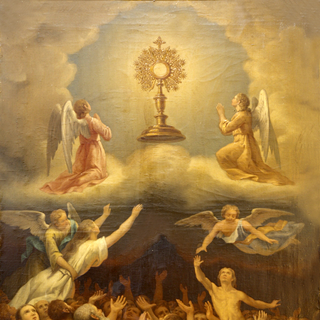 La Eucaristía es uno de los siete Sacramentos. Nos recuerda el momento en el que el pan y el vino se convierten en el Cuerpo y en la Sangre de Cristo. Éste es el alimento del alma. Así como nuestro cuerpo necesita comer para vivir, nuestra alma necesita comulgar para estar sana. Cristo dijo: «El que come mi Carne y bebe mi Sangre, tiene vida eterna y yo lo resucitaré el último día.»
