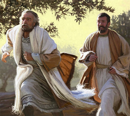 Podía deducir, que si se hubieran llevado el cuerpo de Jesús no se habrían entretenido en quitarle la sábana de amortajar y en dejarlo bien allanado. Fue el primero en llegar al sepulcro. Pero, sin embargo, por lo que dice el evangelista, no parece que de los dos discípulos, fuera el primero en llegar a la fe pascual. Entra, a continuación, el otro discípulo. Con los ojos ve lo mismo que Pedro. Pero se deja conducir por la luz de la fe en las Escrituras y por el amor que tiene a Jesús, y esto le hace descubrir la realidad de lo que ve con una dimensión profunda que va más allá de lo que captan los sentidos. Y cree que Jesús ha resucitado. Pedro llega también a continuación a la fe al comprender que las Escrituras ya decían que Jesús debía resucitar de entre los muertos. Hemos oído su testimonio en la primera lectura.