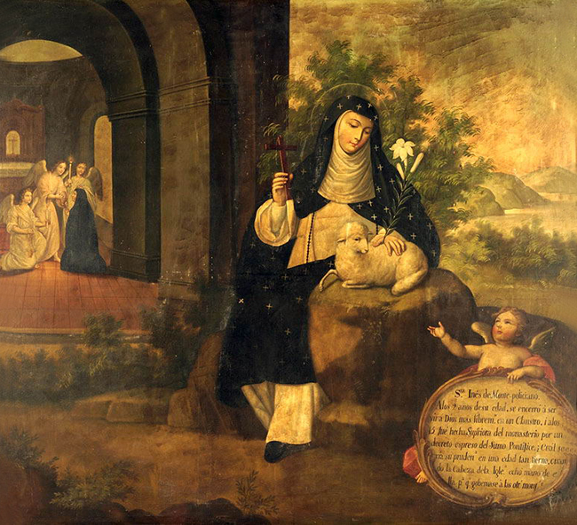 De la vida de santa Inés se cuentan numerosos milagros, entre ellos que se le apareció la Virgen y le entregó al Niño Jesús en brazos.