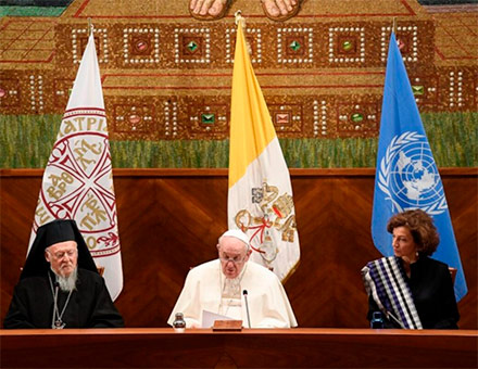 Con Bartolomé «compartimos el deber de proclamar el amor a la creación y el compromiso de su cuidado», dice el Papa Francisco. Y revela que, mientras se redactaba la encíclica Laudato si’, «fue fuerte la luz que vino de él y de la Iglesia de Constantinopla», la primera entre las Iglesias cristianas en comprometerse con los temas medioambientales y en establecer, en 1989, una Jornada para el Cuidado de la Creación. «Salvaguardar la creación -dijo el Papa citando al Patriarca- es una forma de amar, de pasar gradualmente de lo que yo quiero a lo que el mundo de Dios necesita. Es la liberación del miedo, la avidez y la dependencia».