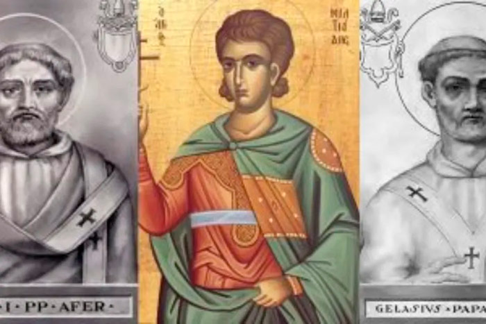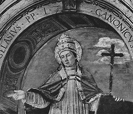 San Gelasio I es considerado el tercer papa de origen africano, su nacimiento en el norte del continente  (en la Cabilia) es motivo de desacuerdo entre los historiadores, ya que muchos lo sitúan en Roma. Inició su pontificado en el 492 y finalizó en el 496. Movido por su caridad sin medida y las necesidades de los indigentes, murió en la más extrema pobreza.