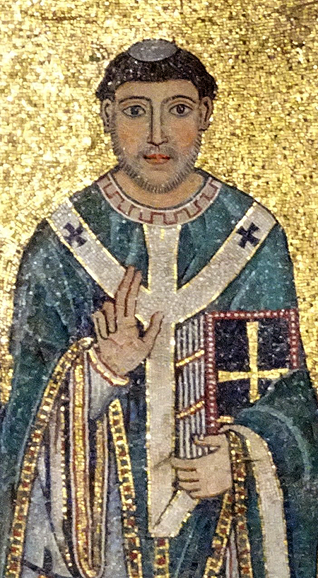 Oh Dios, que eres el premio, la corona y la suerte de todos tus soldados, líbranos de los lazos de las culpas por este mártir a quien hoy cantamos. Él conoció la hiel que está escondida en la miel de los goces de este suelo, y, por no haber cedido a sus encantos,está gozando los del cielo eterno. Él afrontó con ánimo segurolo que sufrió con varonil coraje, y consiguió los celestiales dones al derramar por ti su noble sangre.Oh piadosísimo Señor de todo,te suplicamos con humilde ruego que, en el día del triunfo de este mártir, perdones los pecados de tus siervos. Gloria eterna al divino Jesucristo, que nació de una Virgen impecable, y gloria eterna al Santo Paráclito, y gloria eterna al sempiterno Padre. Amén.