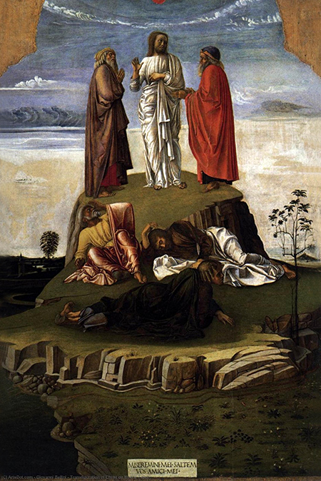 Jesús, al atardecer de aquel día, deja a los apóstoles en la explanada galilea y, tomando a los tres más íntimos –Pedro, Santiago y Juan–, se sube a la cima de la hermosa montaña.