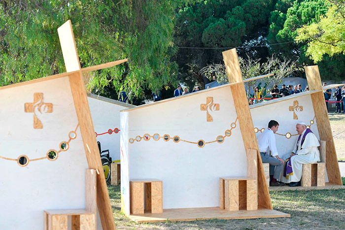 Tres jóvenes de España, Guatemala e Italia tuvieron la bendición de ser confesados por el Pontífice en el Parque del Perdón, donde se han instalado 150 confesionarios construidos por presos.