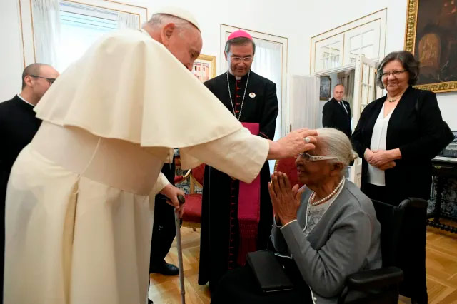 El Papa se reunió con María de la Concepción Brito Mendonça en la Nunciatura antes de partir al Parque del Perdón. Nació el 13 de mayo de 1917.