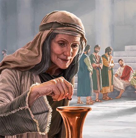 Aquellas pobres viudas, dando un pedacito de pan y echando al tesoro del templo dos monedas de las más pequeñas, no dieron sólo lo que tenían: su gesto nos dio también todo un ejemplo de vida que todavía nos es válido. Fue un gesto que nos dice cómo quiere Dios que vivamos: con fe y generosidad. Y no sólo nosotros: aquella pobre viuda que se quedaba sin nada y se confiaba plenamente de Dios, le estaba dando también un ejemplo al mismo Jesús, que le seguiría unos días más tarde cuando se dio a sí mismo por nosotros, sin reservarse nada para él. Lo hizo generosa y gratuitamente, para que pudiéramos tener unos bienes infinitamente mayores. Aquel gesto de las viudas, además, nos enseña que aunque la vida nos haya tratado mal sin culpa, siempre podemos dar: podemos dar nuestro tiempo, nuestra confianza, nuestra escucha, nuestra sonrisa; podemos darnos a los demás de muchas maneras, seamos quienes seamos, y estemos en la etapa de la vida que estemos. Un niño que juegue a “lego”, puede dar a otro esa ficha que sabe que le hace falta, aunque él la quiera. Un padre o una madre, aunque estén cansados, se levantarán a la hora de que sea de la noche para ayudar a su hijo que no puede dormir. Una familia que tenga que cuidar a un anciano estará de hacerse según qué en atención a aquellos que antes le dieron su tiempo y su amor. Un anciano, con una sola frase dicha en el momento oportuno dará toda una lección de vida. Un enfermo, puede también animar a quienes lo van a ver. Y así podríamos ir poniendo infinitos ejemplos… Porque una de las grandes enseñanzas del evangelio de hoy es que aquellos pequeños gestos que se hacen por amor, por insignificantes que sean, pueden dejar una huella imborrable en los demás. Como aquellas dos monedas de la viuda que, a pesar de tener por aquel entonces un valor ínfimo, hoy tienen para nosotros un valor incalculable porque dos mil años después todavía nos enseñan qué es lo que Dios espera de nosotros: espera que demos, con generosidad , de lo que tenemos y necesitamos, no de lo que nos sobra. Si queremos, cada día del mundo tenemos la oportunidad de hacer experiencia y ponerlo en práctica.