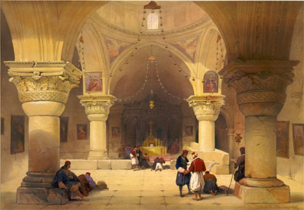 La capilla de tres naves, con 4 columnas que sostienen la cúpula es de propiedad de los Armenios y es del siglo XII. Fuentes y excavaciones arqueológicas confirman que ya en el proyecto constantino el aula se utilizaba de alguna manera. De las paredes cuelgan muchas lámparas según el estilo armenio.