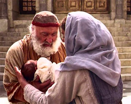Vivía en Jerusalén un hombre llamado Simeón, varón justo y temeroso de Dios, que aguardaba el consuelo de Israel; en él moraba el Espíritu Santo, el cual le había revelado que no moriría sin haber visto antes al Mesías del Señor. Movido por el Espíritu, fue al templo, y cuando José y María entraban con el niño Jesús para cumplir con lo prescrito por la ley, Simeón lo tomó en brazos y bendijo a Dios, diciendo: