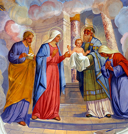 Martirologio Romano: Fiesta de la Presentación del Señor, llamada Hypapante por los griegos: Cuarenta días después de Navidad, Jesús fue conducido al Templo por María y José, y lo que podía aparecer como cumplimiento de la ley mosaica era realmente su encuentro con el pueblo creyente y gozoso, manifestándose como luz para alumbrar a las naciones y gloria de su pueblo Israel.