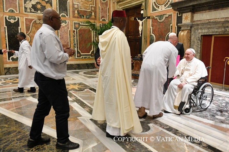 Además, el Obispo de Roma compartió con los Padres Blancos su recuerdo de la celebración de su 150º aniversario vivido hace tres años junto a sus Hermanas Misioneras. De ahí su petición: “Por favor, ¡llévenle también a ellas mis saludos!”.