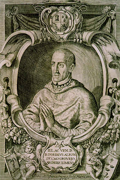 Martirologio Romano: Santo Toribio de Mogrovejo, obispo de Lima, que siendo laico, de origen español y licenciado en leyes, fue elegido para esta sede y se dirigió a América donde, inflamado en celo apostólico, visitó a pie varias veces la extensa diócesis, proveyó a la grey a él encomendada, fustigó en sínodos los abusos y los escándalos en el clero, defendió con valentía la Iglesia, catequizó y convirtió a los pueblos nativos, hasta que finalmente en Saña, del Perú, descansó en el Señor († 1606).