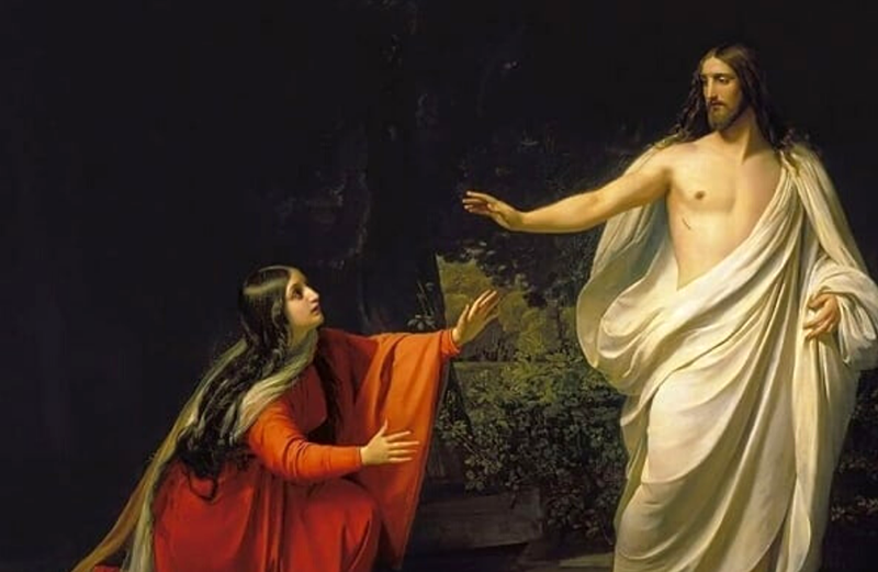 Dicho esto, miró hacia atrás y vio a Jesús de pie, pero no sabía que era Jesús. Entonces él le dijo: “Mujer, ¿por qué estás llorando? ¿A quién buscas?”. Ella, creyendo que era el jardinero, le respondió: “Señor, si tú te lo llevaste, dime dónde lo han puesto”. Jesús le dijo: “¡María!”. Ella se volvió y exclamó: “¡Rabbuní!”, que en hebreo significa ‘maestro’. Jesús le dijo: “No me retengas, porque todavía no he subido al Padre. Ve a decir a mis hermanos: ‘Subo a mi Padre y su Padre, a mi Dios y su Dios’”.