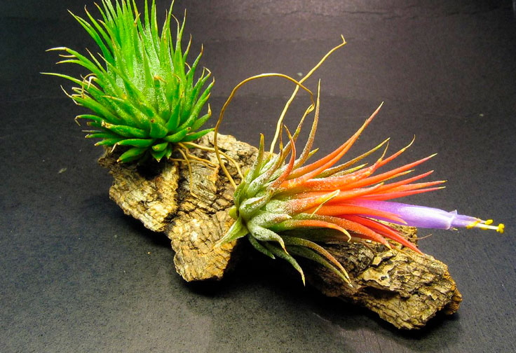 Las tillandsias reciben el nombre común de «clavel del aire». Algunas veces las vemos sujetas a un árbol, pero también las encontraremos enlazadas a una tubería, a los hierros de un balcón o sobre una piedra. Nunca son parásitos, no viven del árbol o de los minerales de la piedra. Curiosamente, sus raíces se enlazan a esos materiales como modo de sujeción pero no cumplen una función alimentaria.