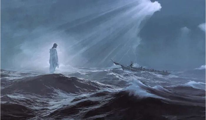 Entre tanto, la barca iba ya muy lejos de la costa y las olas la sacudían, porque el viento era contrario. A la madrugada, Jesús fue hacia ellos, caminando sobre el agua. Los discípulos, al verlo andar sobre el agua, se espantaron y decían: «¡Es un fantasma!» Y daban gritos de terror. Pero Jesús les dijo enseguida: «Tranquilícense y no teman. Soy yo».
